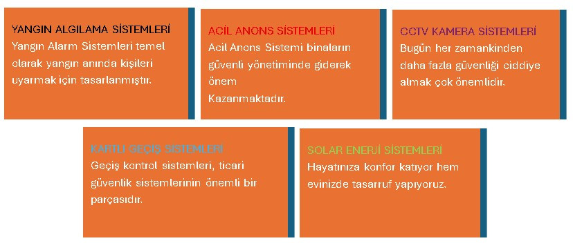 Firmamız zayıf akım sistemlerinde konusunda uzmanlaşmış kadrosu ile Yangın Algılama, Hemşire Çağrı, CCTV, Acil Anons ve Kartlı Geçiş sistemlerinde ürün tedariği, altyapı montaj ve devreye alma mühendislik hizmeti veren entegratör bir firmadır.